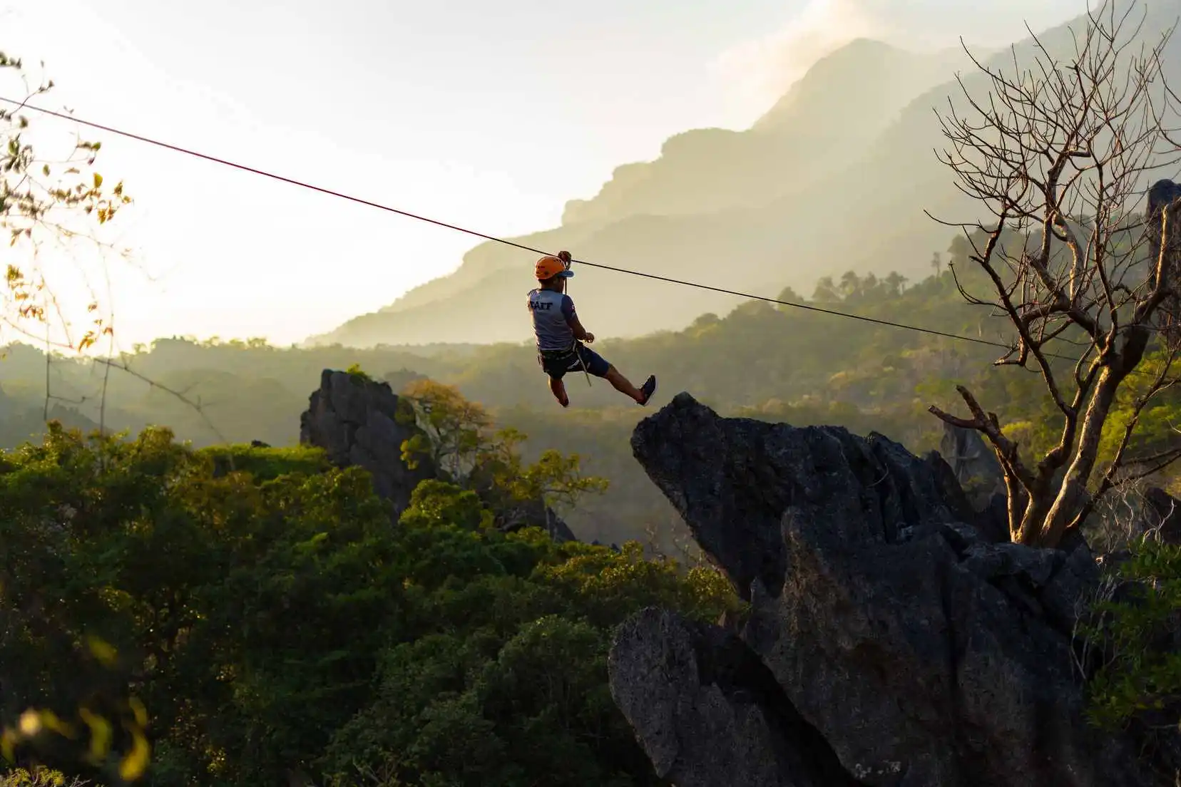 At the Karst of Phou Pha Marn (The Rock View Point), visitors can explore the karst forest canopy and cliffs with zipline circuits, spider nets and via ferrata routes, for few hours up to full-day adventures. Just ask at the Rock View Point reception desk!